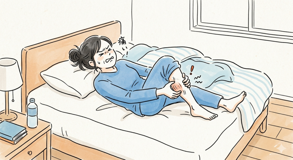 突然ふくらはぎが強くつってしまう「こむら返り」。夜中や明け方に起こることが多く、強い痛みで目が覚めてしまう方も少なくありません。